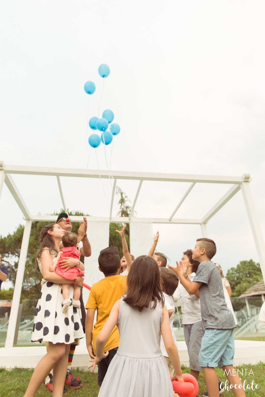 desde a chegada do Tomás até ao corte do bolo que teve direito a largada de balões.